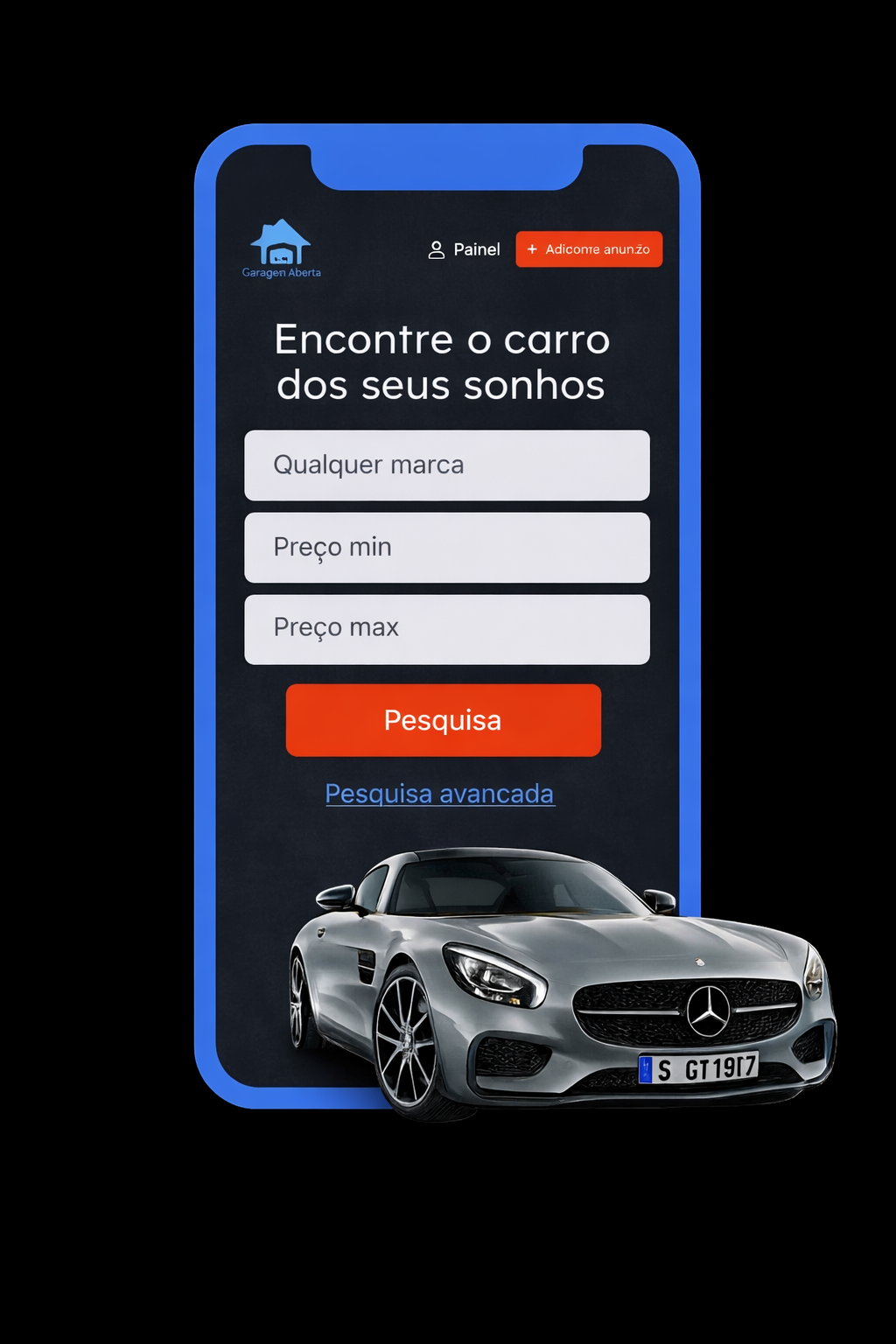 Não. O Garagem Aberta é uma plataforma de classificados que conecta as partes. Toda a negociação, vistoria e pagamento são feitos diretamente entre comprador e vendedor.